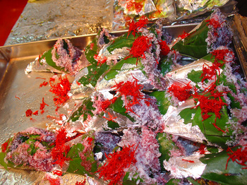 One very interesting thing we learned from two of the Nomadic Banquet participants, John Vijay Abraham and Sanjeev Shankar’s street food research at the IIT Bombay, is that street food vending is not always a step on the path to restaurantdom. A case in point, they stated is Muchhad Paanwallah, a paan kiosk in Mumbai named after an impressive ear to ear mustache of the owner’s father. The current owner, Jaishankar Tiwari has been immensely successful in his street-side paan business, so much so that his and the families of his four sons all live from it. If you can’t visit his kiosk in Mumbai it’s well worth checking out his website, where you can place orders for paan online.